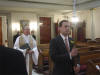 Jason Marks leads the procession followed by Rev. Leon Wagner.